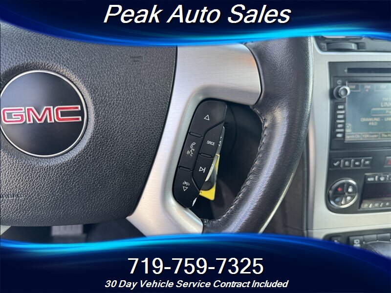 2012 GMC Acadia SLT-1 — Quicksilver Metallic exterior with an Ebony interior. Powered by a 3.6L V6 producing 288 hp and 270 lb-ft of torque, paired with a smooth-shifting six-speed automatic transmission. This Acadia blends V6 power with practical fuel economy, rated at approximately 16 MPG city and 23 MPG highway.