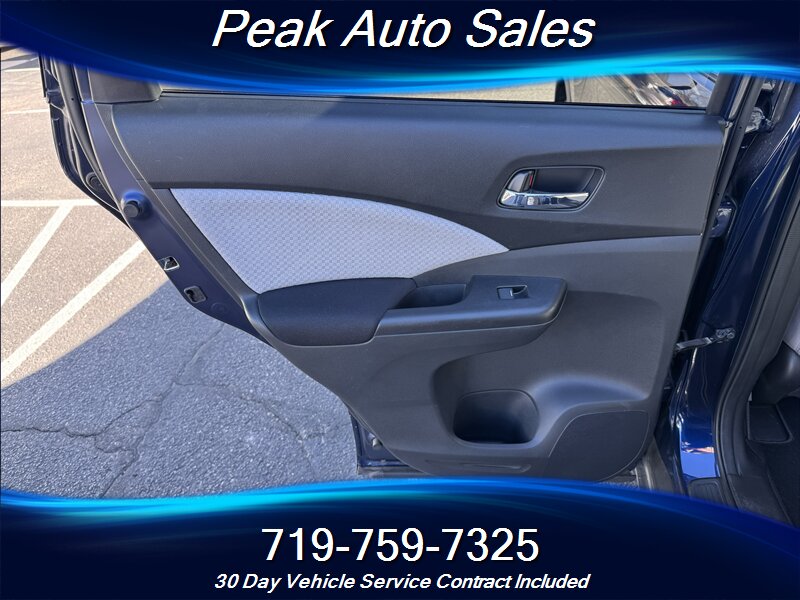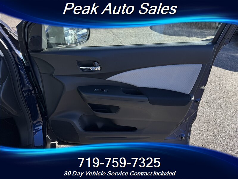 Technology features include a 7-inch touchscreen display, Bluetooth hands-free connectivity, and a rearview camera for added safety when reversing. The CR-V also comes with a Honda LaneWatch system, which uses a camera mounted on the passenger side mirror to provide a view of the lane beside you, enhancing visibility and safety.