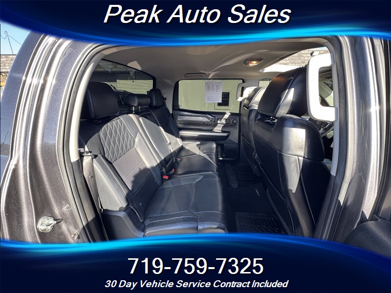 Moving to the interior, the Tundra Platinum is designed with comfort and convenience in mind. The cabin is adorned with premium black leather upholstery, providing a sophisticated ambiance. The front seats are heated and ventilated, ensuring a comfortable ride regardless of the weather outside. The spaciousness of the interior is notable, with ample headroom and legroom for both front and rear passengers. The rear seats feature a 60/40 split-folding design, allowing for increased cargo flexibility when needed.