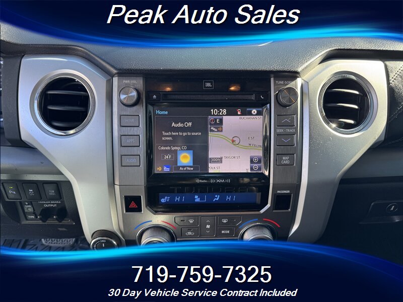 The Tundra Platinum is equipped with an array of advanced technology features that enhance the driving experience. The Entune Premium Audio system includes a high-resolution touchscreen display, Bluetooth connectivity, and navigation capabilities, making it easy to stay connected and find your way. The audio system is complemented by a powerful 12-speaker JBL sound system, providing exceptional sound quality for your favorite music or podcasts. The truck also features a rearview camera, which aids in parking and maneuvering in tight spaces.