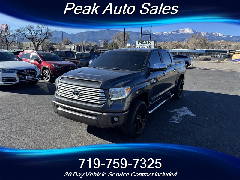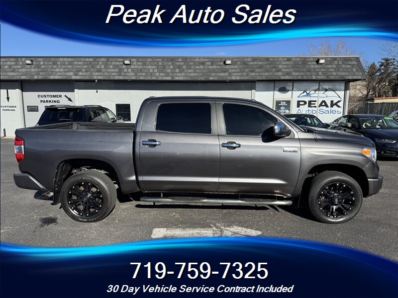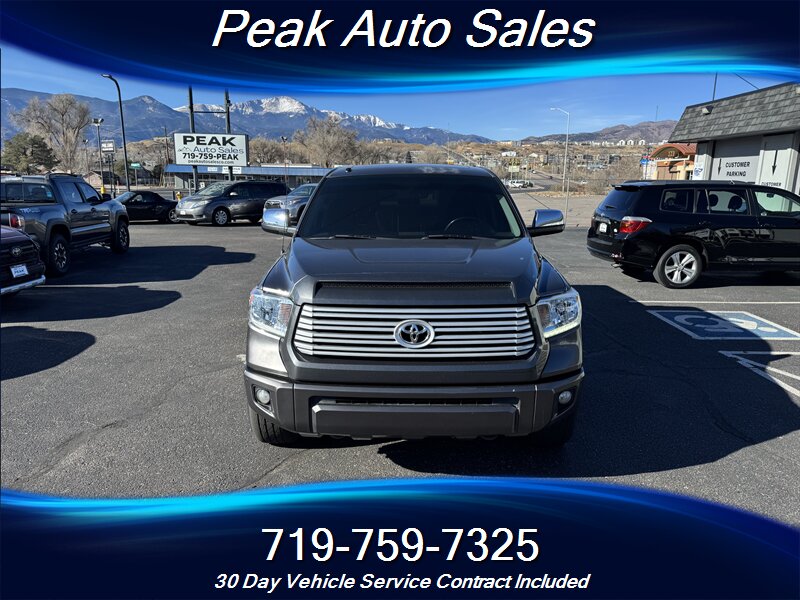 2015 Toyota Tundra Platinum, a full-size pickup truck that exemplifies strength, capability, and comfort. This model showcases a sophisticated Magnetic Gray Metallic exterior, which not only adds to its rugged aesthetic but also offers a sleek and modern touch. The Tundra’s robust frame and bold lines are complemented by its imposing stance, making it a standout option in the competitive truck segment.