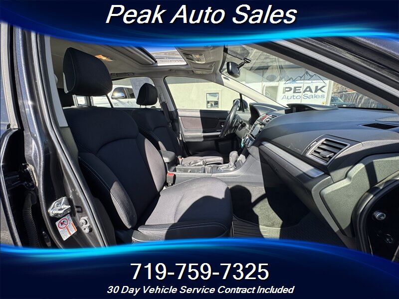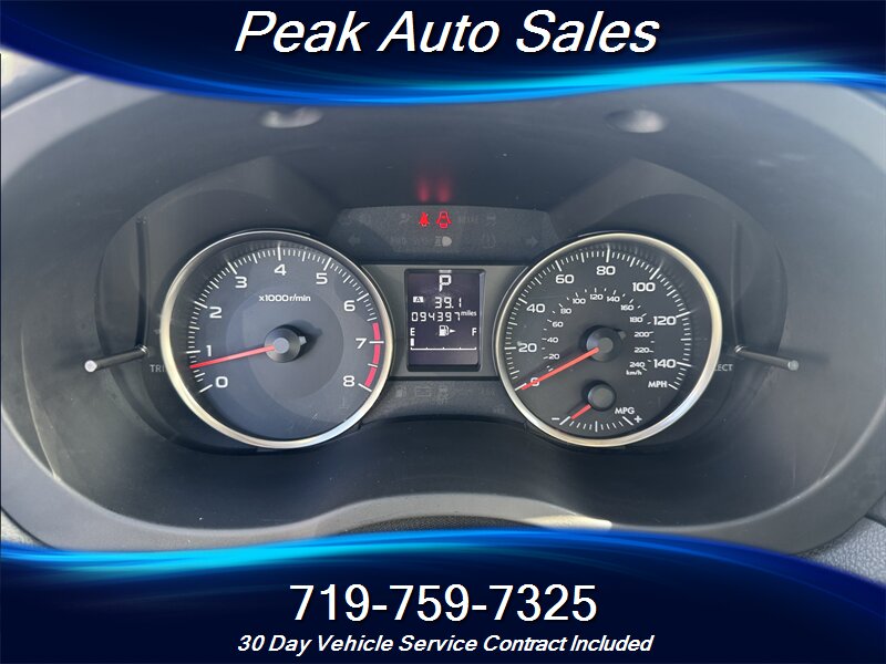 2016 Subaru Impreza 2.0i Sport Premium — Dark Gray Metallic exterior with Black Striped cloth interior. This Impreza is in excellent overall condition, has a clean CARFAX report, and shows only one previous owner. It has under 95,000 miles (averaging under 9,000 miles per year) and delivers very economical operation at an EPA-rated 27 MPG city and 36 MPG highway.