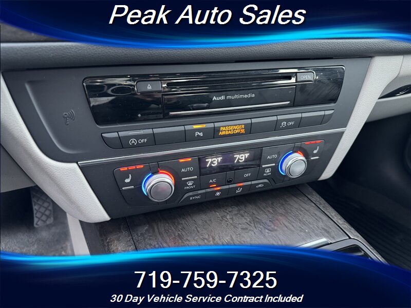 This Premium Plus model is factory-equipped with Audi’s MMI infotainment system (including navigation capability on MMI Navigation-equipped cars), a central display and MMI controller/touchpad, Bluetooth hands-free phone and audio streaming, USB and auxiliary inputs, HD Radio, and a multi-function steering wheel. Convenience features commonly included in the Premium Plus package — and present on this vehicle — are keyless entry with push-button start (Advanced Key), parking sensors with a rearview camera, and Audi drive select for adjusting vehicle dynamics.