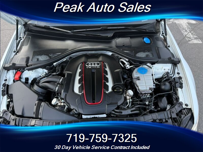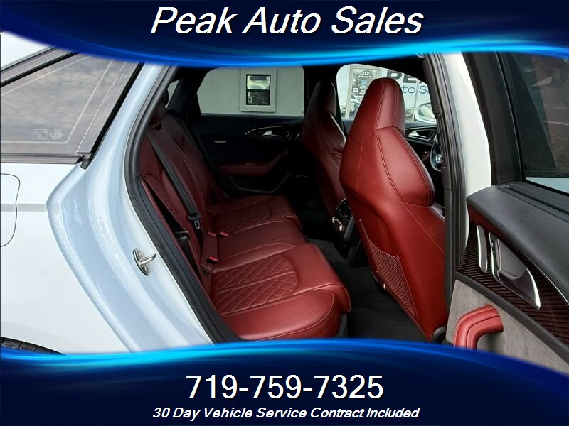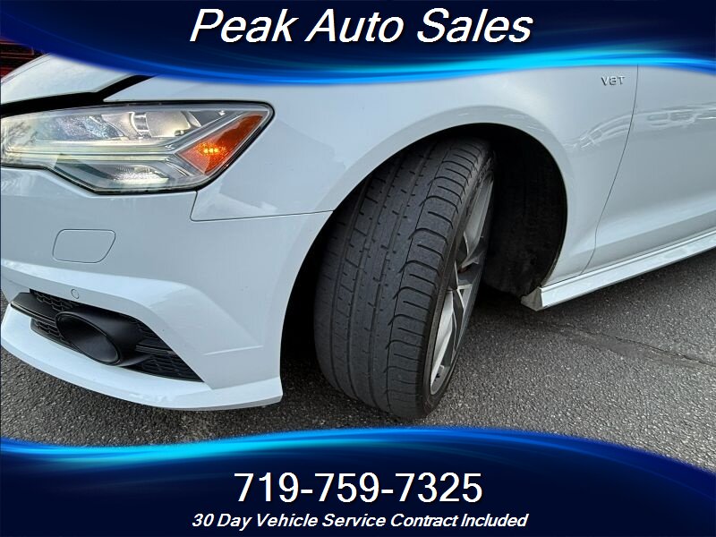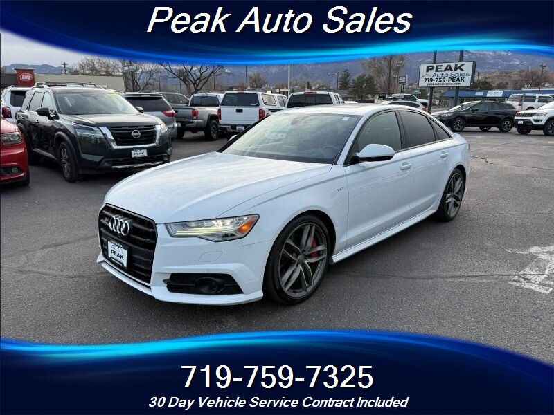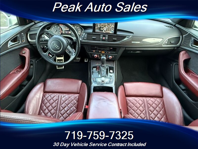 2017 Audi S6 4.0T quattro Prestige — Havanna Black Metallic exterior with Arras Red leather interior. This S6 is powered by the factory 4.0L twin-turbo V8 producing 450 hp and 406 lb-ft of torque, coupled to Audi’s quick-shifting 7-speed S tronic transmission and quattro all-wheel drive. The current mileage is below 68,000 miles (averaging under 7,000 miles per year), and the vehicle delivers EPA-rated fuel economy of approximately 18 MPG city / 27 MPG highway. The car is in excellent overall condition and has a clean CARFAX report.