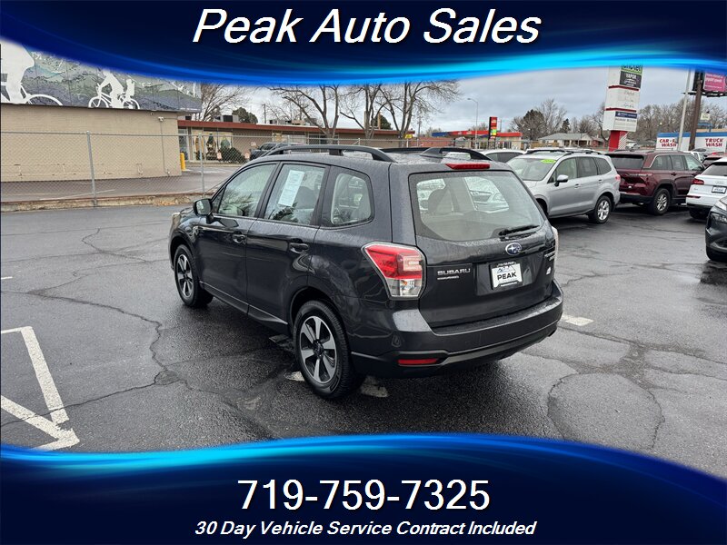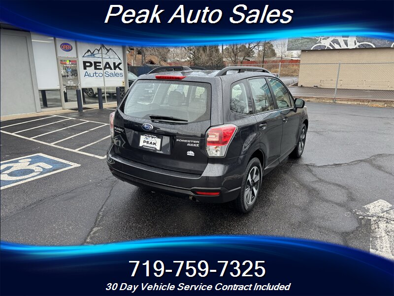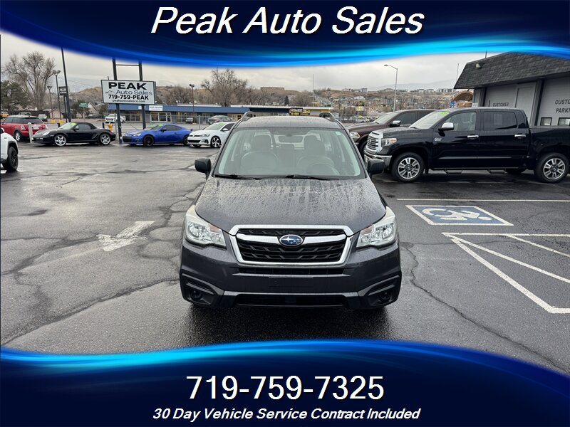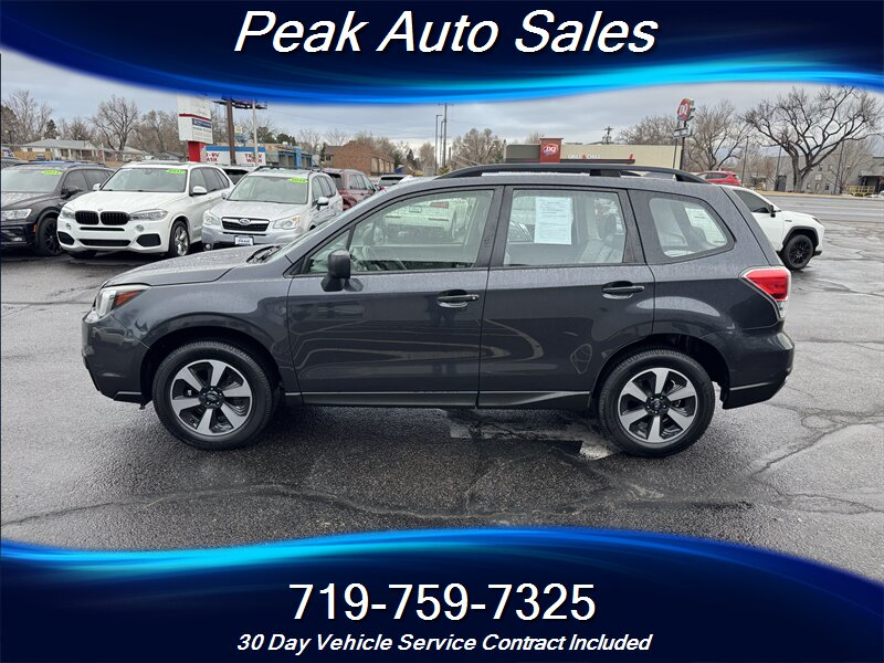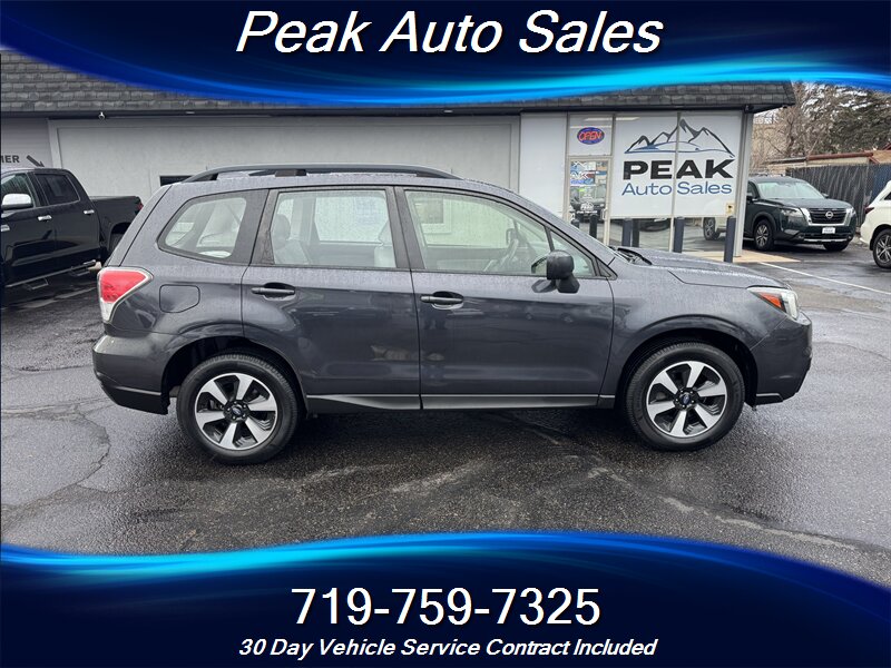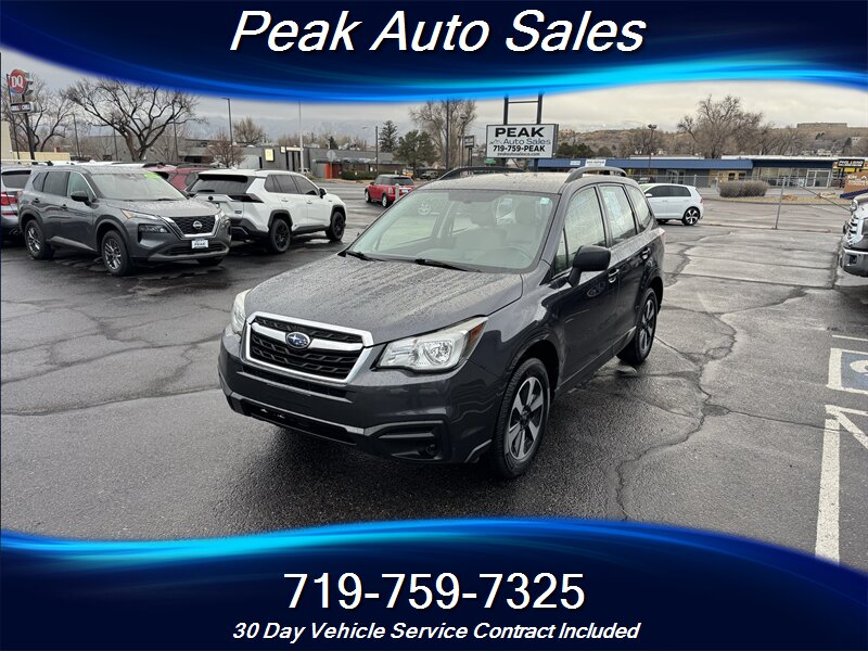 2017 Subaru Forester 2.5i — Dark Gray Metallic exterior, Gray cloth interior. Powered by a 2.5L horizontally opposed (H4) engine producing 170 hp and 174 lb-ft of torque, this Forester delivers a balanced mix of everyday performance and fuel efficiency, rated at 26 MPG city and 32 MPG highway.
