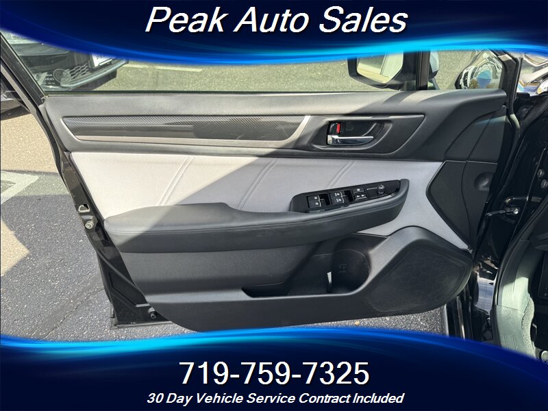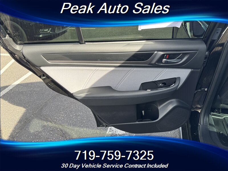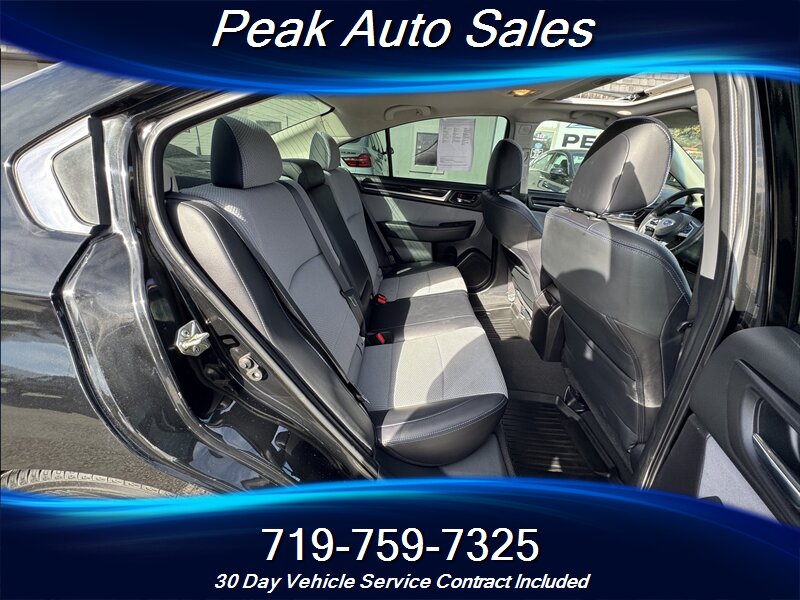 Moving to the interior, the Legacy 2.5i Sport features a Two-Tone Gray upholstery, creating an inviting and modern cabin environment. The spacious interior is designed with both comfort and functionality in mind. The front seats are supportive and feature a power-adjustable driver's seat with lumbar support, ensuring that you can find the perfect driving position for any journey. The rear seats are heated for extra comfort.