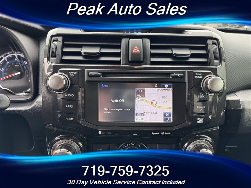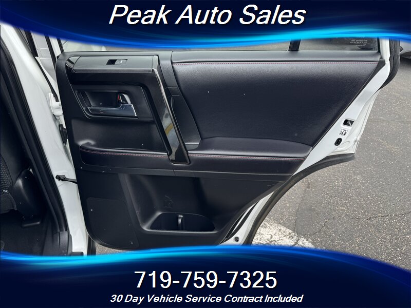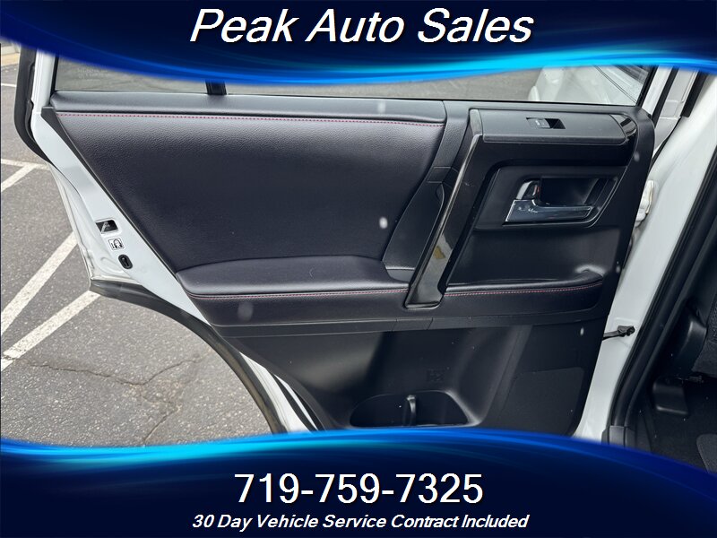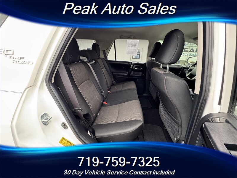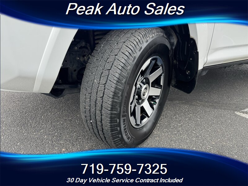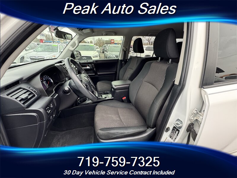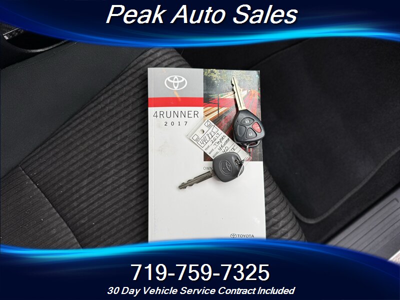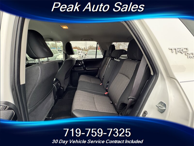 2017 Toyota 4Runner TRD Off-Road — Super White exterior with Black interior. This 4Runner is powered by Toyota’s 4.0L V6 producing 270 hp and 278 lb-ft of torque, paired with a 5-speed automatic transmission. The vehicle achieves an EPA-estimated 17 MPG city and 20 MPG highway. It is in excellent overall condition and comes with a clean CARFAX report.