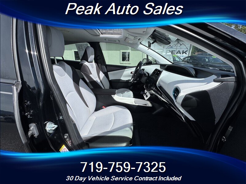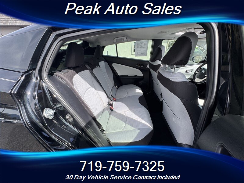 The exterior of this Prius Three is finished in a sleek Midnight Black Metallic, giving it a sophisticated and modern look on the road. Complementing the exterior, the interior of this vehicle is styled in a classic Black color scheme, providing a refined and comfortable environment for both the driver and passengers.