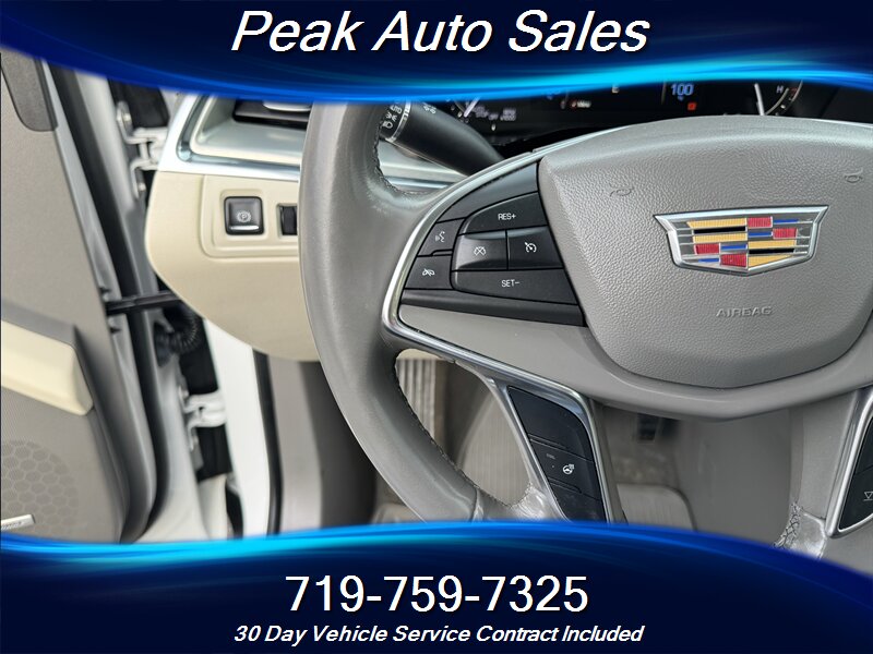 - Infotainment and connectivity: Cadillac CUE infotainment system with a color touchscreen, Bluetooth hands-free phone and audio streaming, USB ports and auxiliary input for device connectivity, and available smartphone integration. Steering-wheel audio and phone controls are standard.