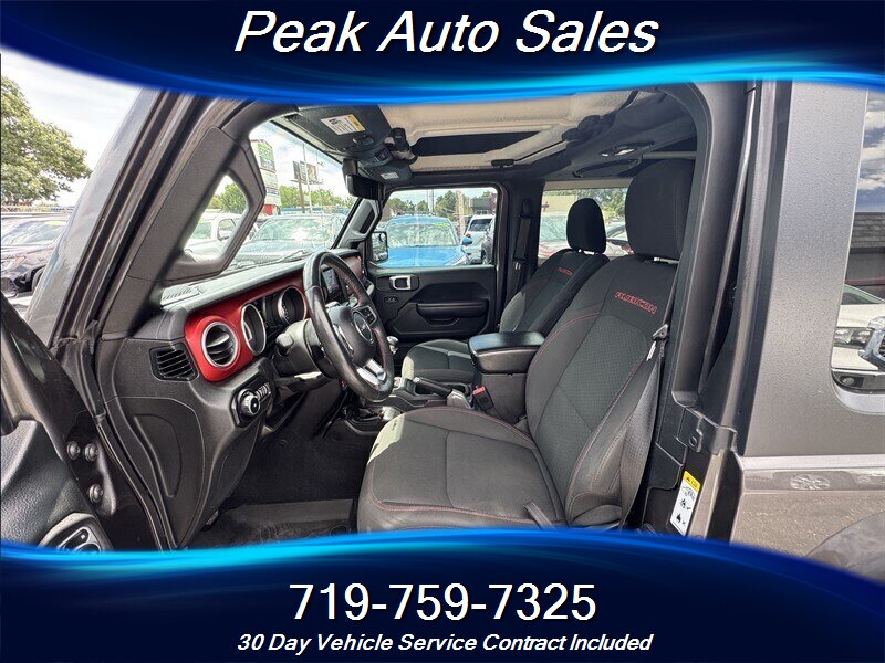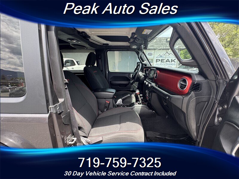 Moving on to the factory default features, the exterior of this Wrangler Rubicon is finished in a striking Granite Crystal Metallic Clear Coat, which not only looks great but also provides durability against the elements. The interior is appointed in Black, offering a sleek and timeless look that complements the rugged exterior styling.