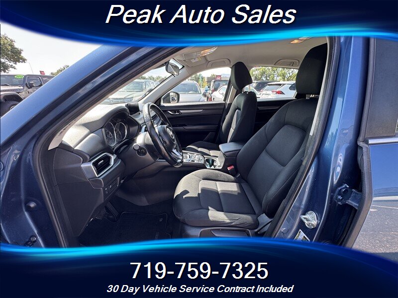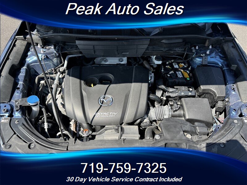 The exterior of this CX-5 Sport is finished in a sleek Eternal Blue Metallic, giving it a sophisticated and modern look that is sure to turn heads wherever you go. Complementing the exterior is an interior dressed in Black, providing a luxurious and comfortable environment for both driver and passengers.