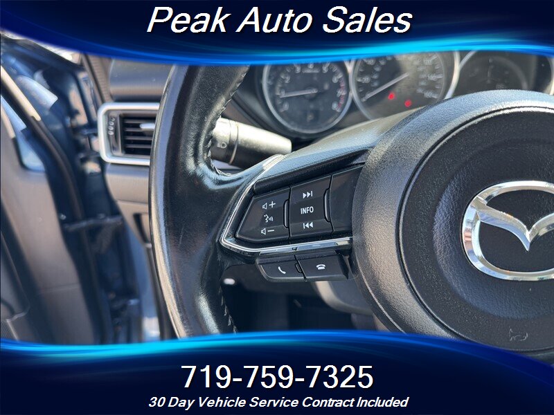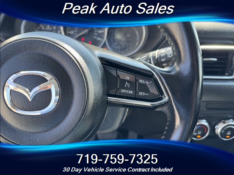 With a mileage of below 75,000 miles, averaging less than 10,000 miles per year, this 2018 Mazda CX-5 Sport is considered to have good mileage for its age. Boasting an impressive fuel efficiency rating of 24 MPG in the city and 30 MPG on the highway, this SUV proves to be economical to own and operate without compromising on performance.