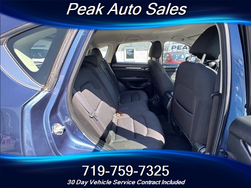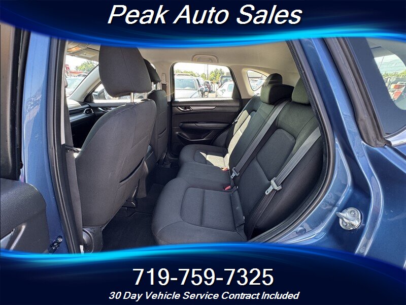 In terms of factory default features, the 2018 Mazda CX-5 Sport comes equipped with a host of amenities designed to enhance your driving experience. The interior offers comfortable cloth seating surfaces that provide ample support during long drives, ensuring a pleasant journey for all occupants. The driver's seat is adjustable for personalized comfort, while the rear seats can be folded down to expand the cargo space, allowing you to accommodate larger items with ease.