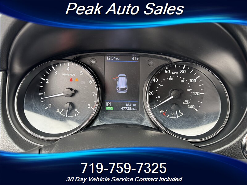 This 2018 Nissan Rogue SL is powered by the factory 2.5L inline-4 engine producing 170 hp and 175 lb-ft of torque, paired with Nissan’s Xtronic CVT. It delivers an EPA-rated 25 MPG city and 32 MPG highway. The vehicle has excellent overall condition, a clean CARFAX report, and well below 48,000 miles — averaging less than 6,000 miles per year.