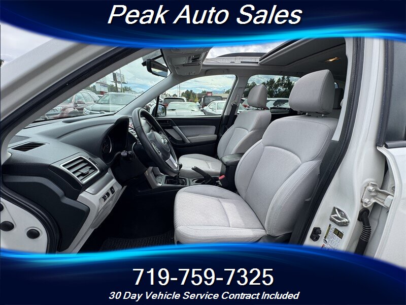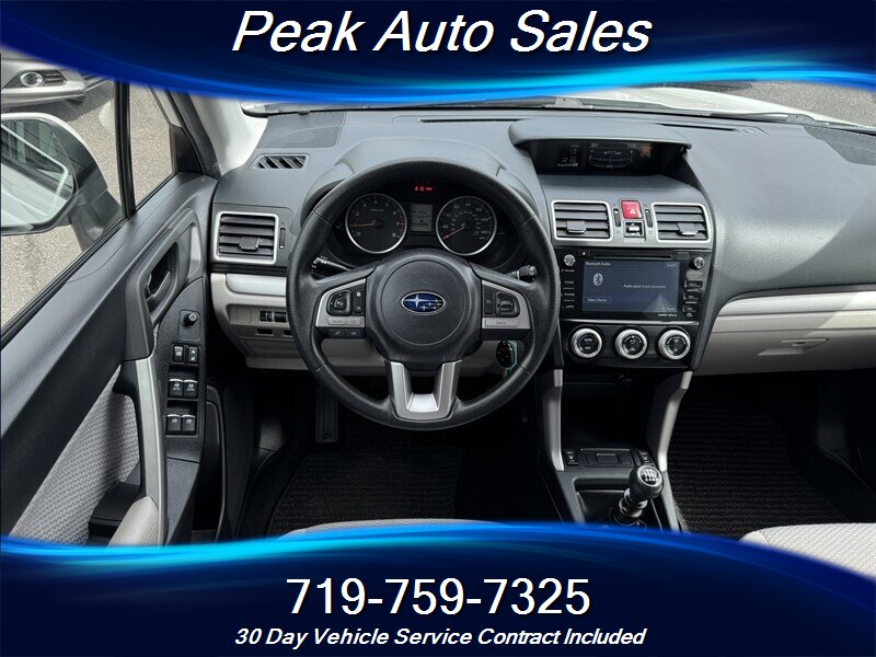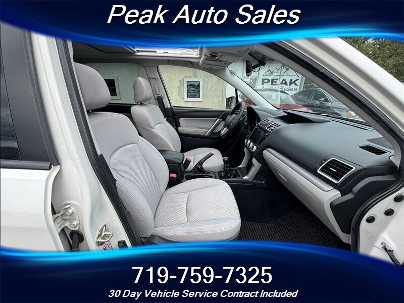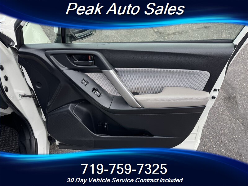 The 2018 Subaru Forester 2.5i Premium is a versatile and reliable compact SUV that is sure to meet the needs of a wide range of drivers. Powered by a 2.5L H4 engine, producing 170hp and 174ft. lbs. of torque, this vehicle offers a balanced mix of performance and fuel efficiency. The Crystal White Pearl exterior paired with the Gray interior gives this Forester a sleek and modern look that is both timeless and sophisticated.
