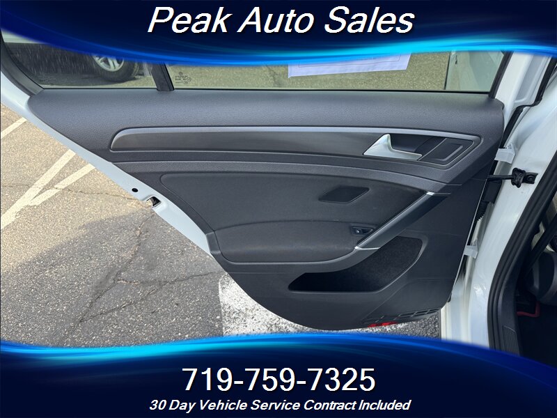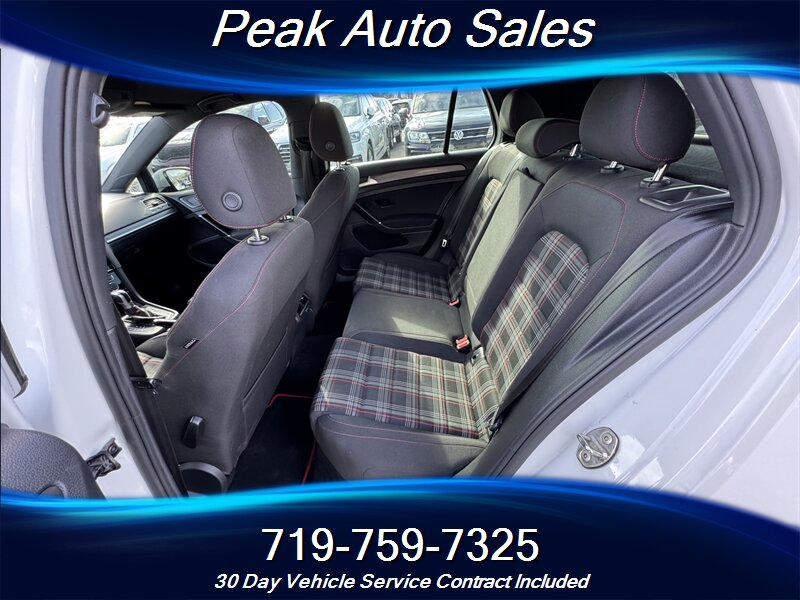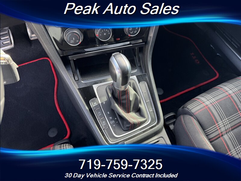 Convenience features abound in the 2018 Golf GTI S, including keyless access with push-button start, automatic climate control, and a premium sound system that ensures an enjoyable audio experience. The hatchback design not only enhances the sporty look of the vehicle but also provides impressive cargo space, making it practical for everyday use. The rear seats can be easily folded down to expand the trunk area for larger items, showcasing the versatility of this compact car.
