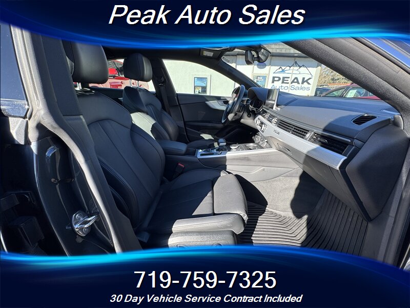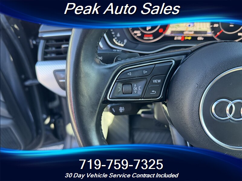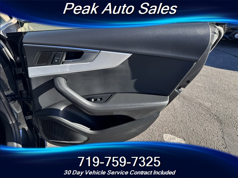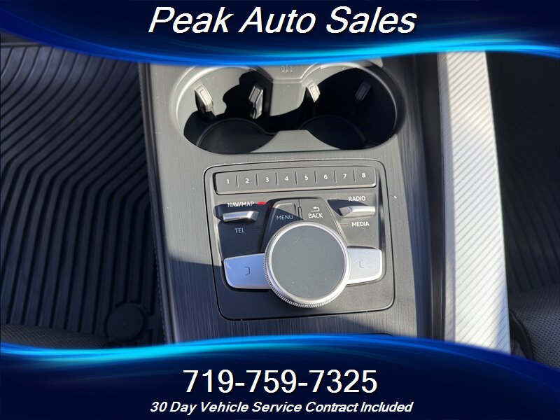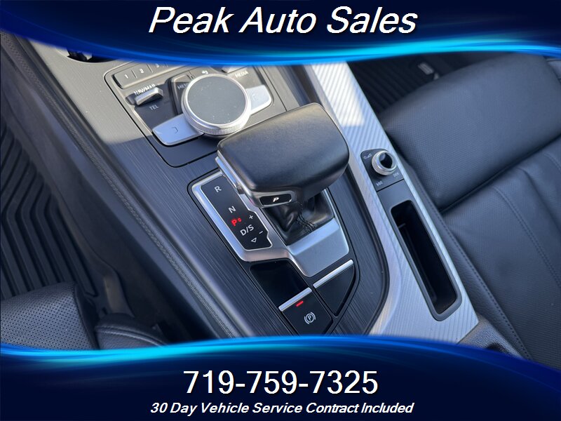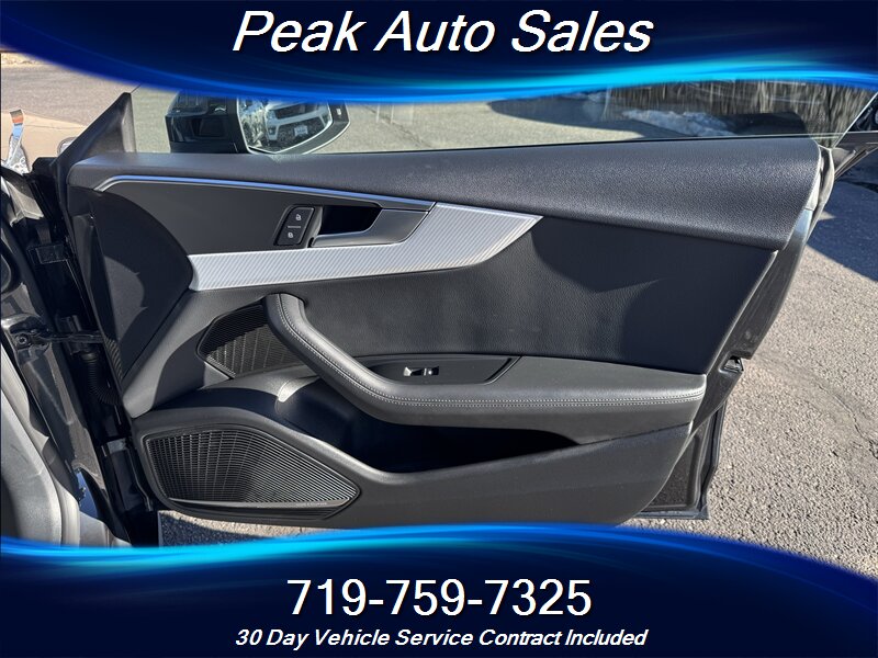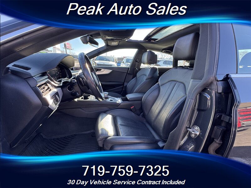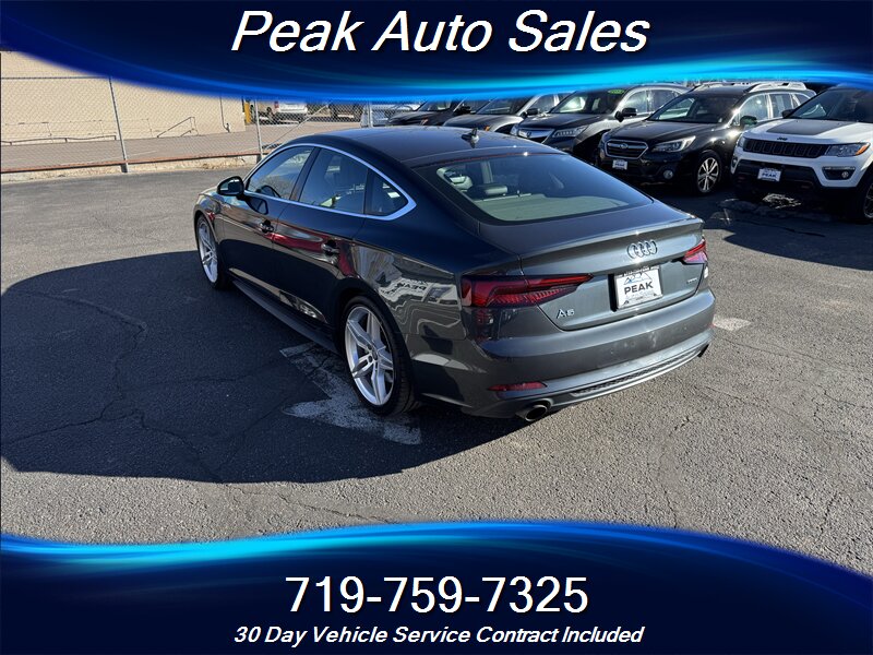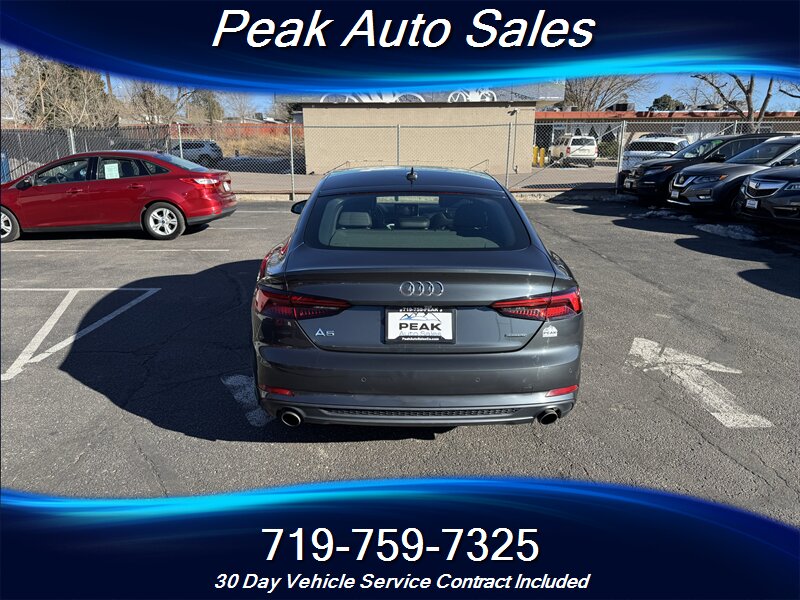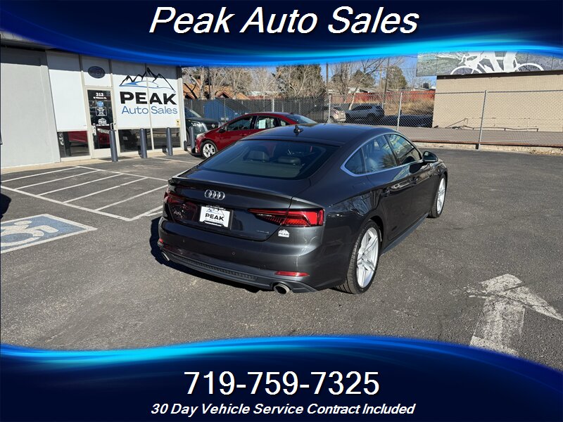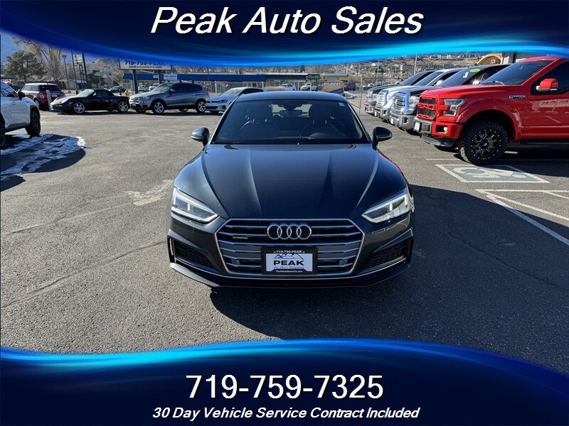 2019 Audi A5 Sportback quattro Premium Plus 45 TFSI — Manhattan Gray Metallic exterior with Black interior. This A5 is powered by a 2.0L turbocharged inline-4 that produces 248 hp and 273 lb-ft of torque, paired with Audi’s 7-speed S tronic dual-clutch transmission and quattro all-wheel drive. EPA fuel economy is 23 MPG city and 34 MPG highway. The vehicle is in excellent overall condition and has a clean CARFAX report.