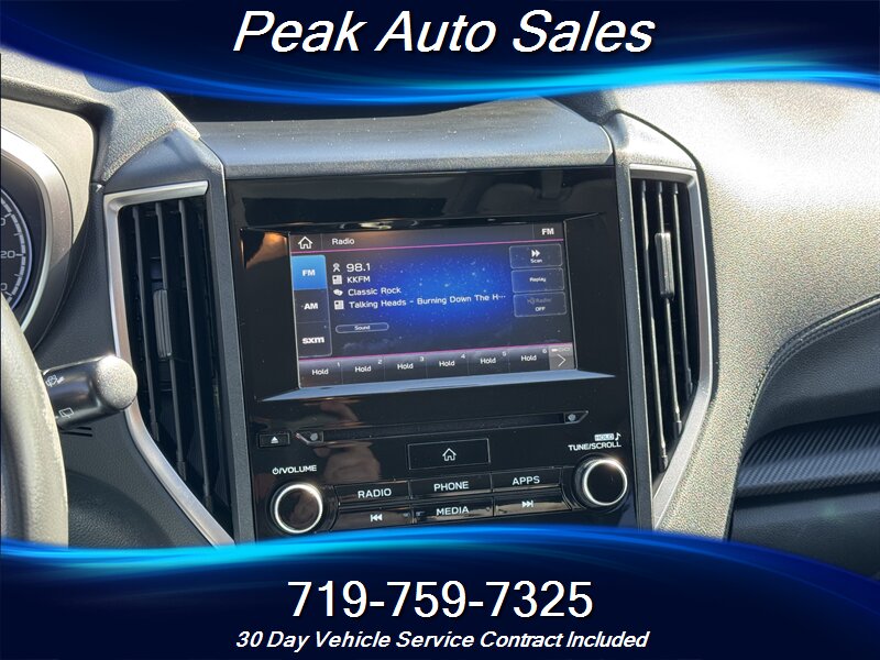 The 2019 Subaru Crosstrek 2.0i Premium comes equipped with a range of factory-default features designed to enhance the driving experience. The vehicle includes a 6.5-inch STARLINK Multimedia touchscreen display, which integrates seamlessly with your smartphone via Apple CarPlay and Android Auto. This allows for easy access to navigation, music, and communication apps, keeping you connected while on the road.