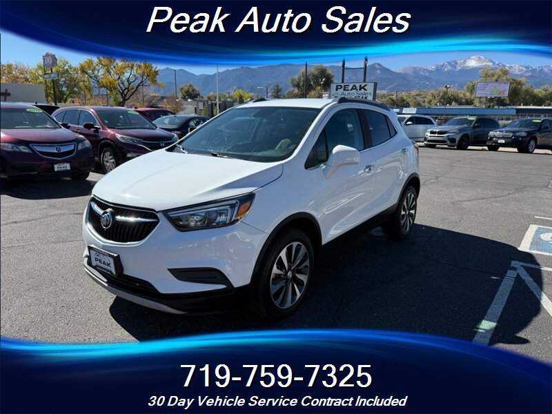 2021 Buick Encore Preferred, a stylish and versatile compact SUV that combines modern design with practicality. This particular model is finished in a striking Summit White exterior, which elegantly complements its Shale interior adorned with sophisticated Ebony accents, creating an inviting atmosphere for both drivers and passengers.
