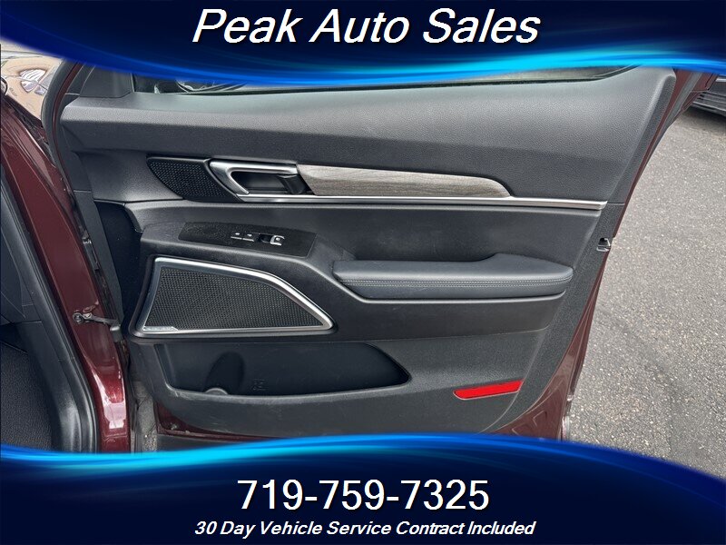 This particular Telluride SX comes with the highly sought-after Nightfall Edition package, adding a touch of sophistication and exclusivity to its already impressive design. The exterior of this model is finished in a striking Sangria color, giving it a bold and eye-catching appearance that is sure to turn heads wherever you go. The interior is elegantly appointed in Gray, providing a refined and luxurious cabin space that is both comfortable and functional.