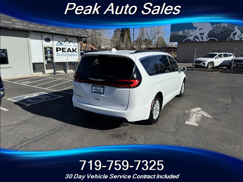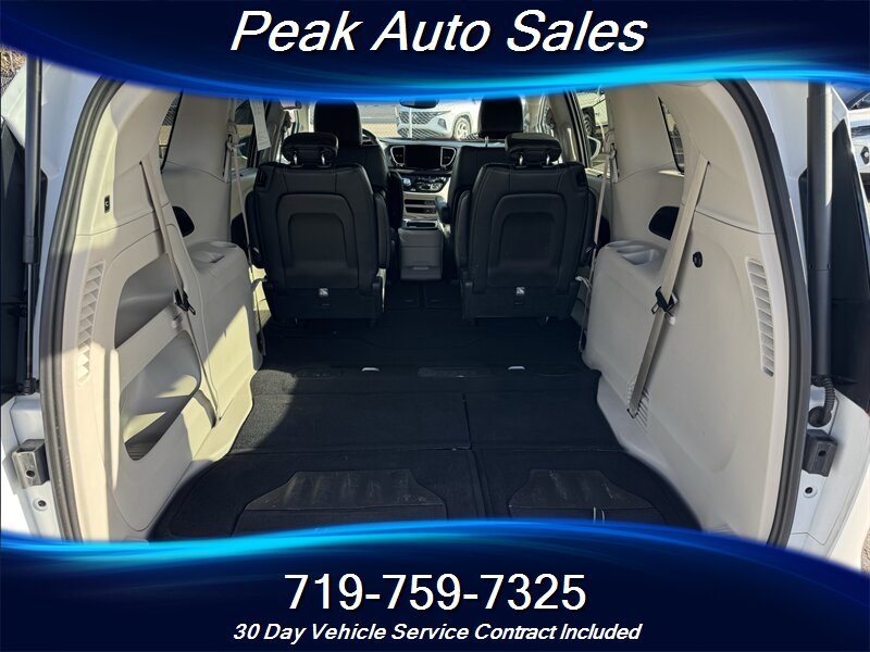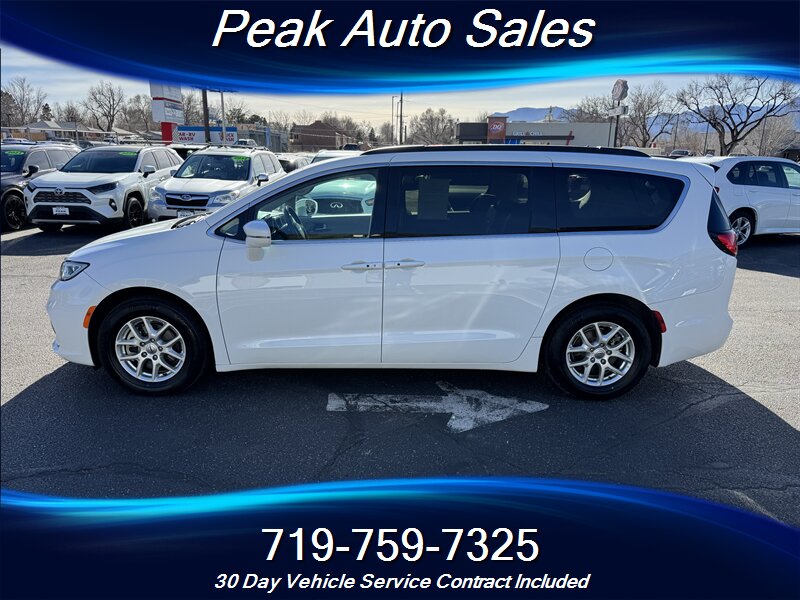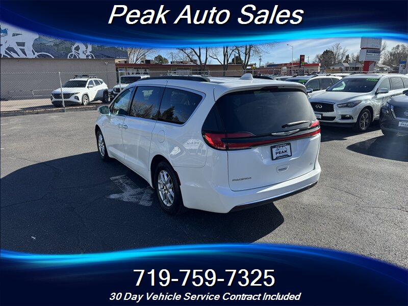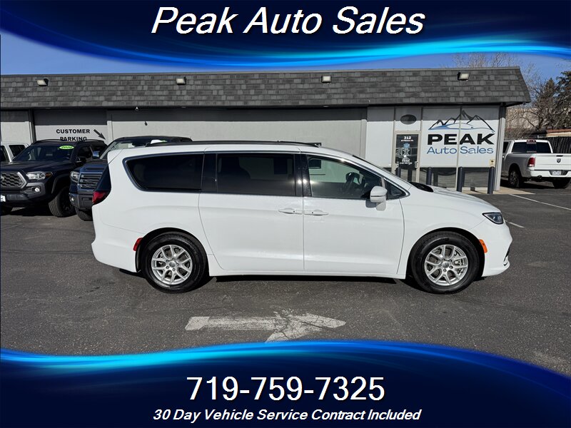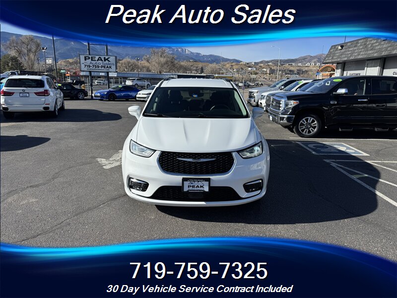 2022 Chrysler Pacifica Touring L — Bright White Clear Coat exterior with Black interior. Powered by the Pentastar 3.6L V6 producing 287 hp and 262 lb-ft of torque, paired with a 9-speed automatic transmission and front-wheel drive. EPA estimated fuel economy is 19 MPG city and 28 MPG highway. This vehicle is in excellent overall condition and has a clean CARFAX report.